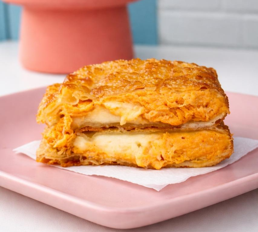 Pastel de frango com cream cheese, com casquinha bem crocante e dourada, recheado com nosso frango cremoso e temperado na medida certa, combinado com o toque suave do cream cheese.