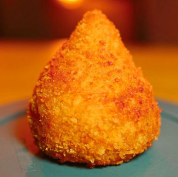 Coxinha de 180g, Massa Macaxeira, Recheio de Carne com Queijo Coalho, Empanada com Farinha Panko.