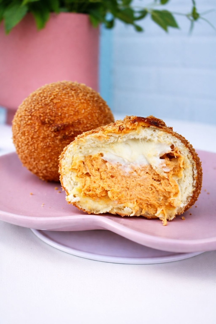 Recheio cremoso de frango com cream cheese. Massa de fermentação natural, empanada na farinha panko, garantindo crocância por fora e maciez por dentro. Peso médio: 100g a 110g