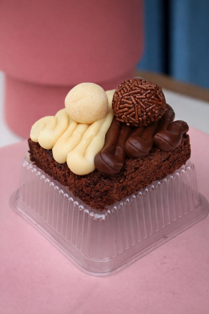 Brownie de chocolate super macio e intenso, coberto com dois cremes irresistíveis: brigadeiro cremoso e creme branco aveludado. Finalizado com brigadeiro gourmet e brigadeiro branco, trazendo ainda mais sabor e cremosidade em cada pedaço. Uma sobremesa perfeita para quem ama chocolate! Aproximadamente 100g
