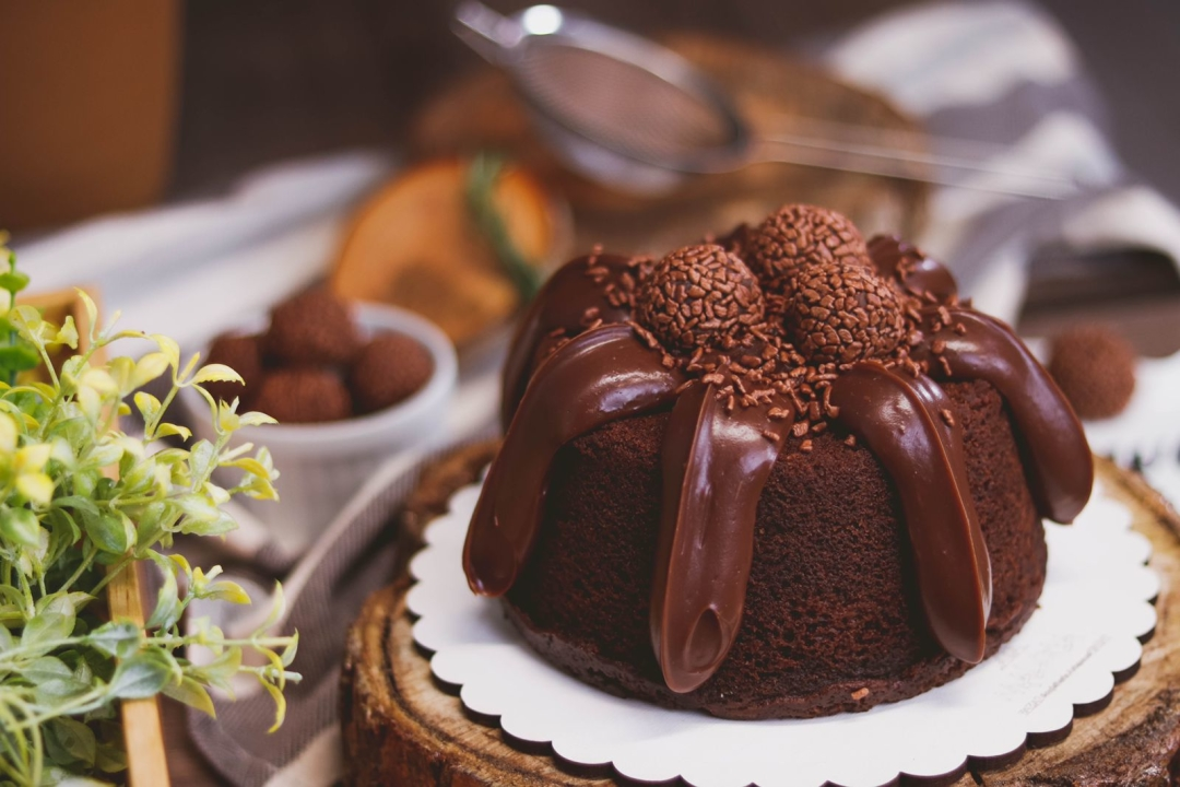 Peso(600). Massa de Chocolate, Recheio de Brigadeiro, Decorado com Brigadeiros.