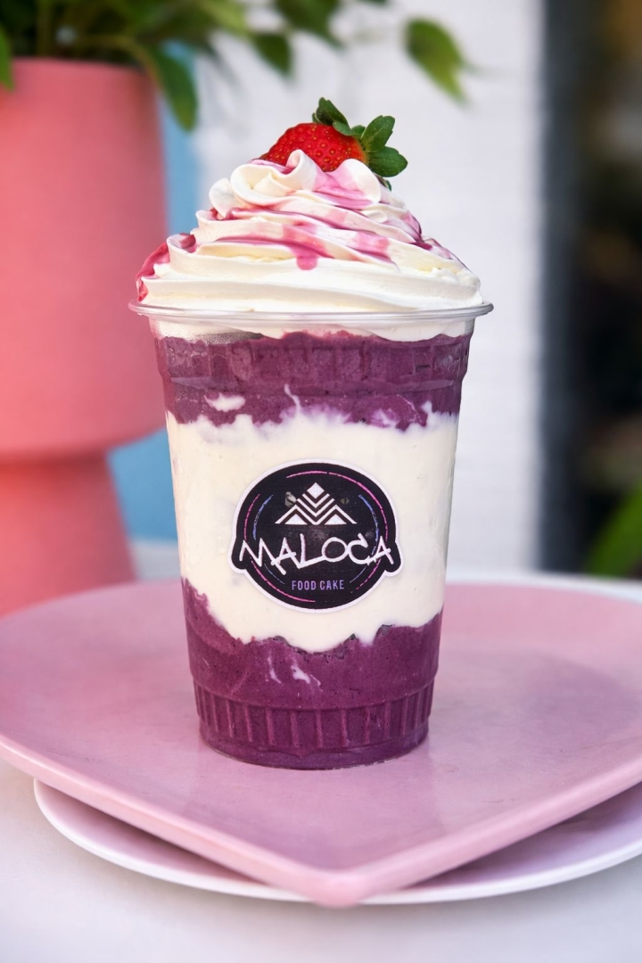 Delicioso milkshake de açaí cremoso, batido com mousse artesanal de leite ninho. Finalizado com chantininho Power, fios de calda de açaí e morango fresco. Aproximadamente 450g.