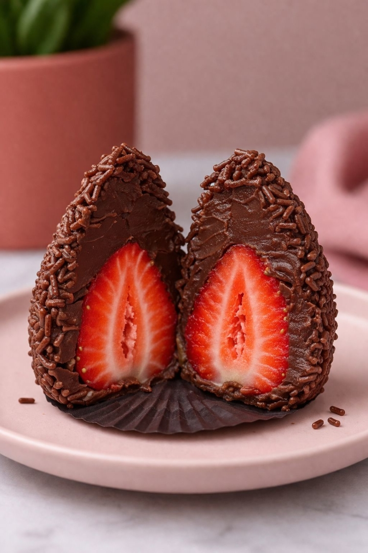 Uma combinação simplesmente irresistível: brigadeiro cremoso, morango fresco e um toque de granulado crocante. Peso aproximado: 60g
