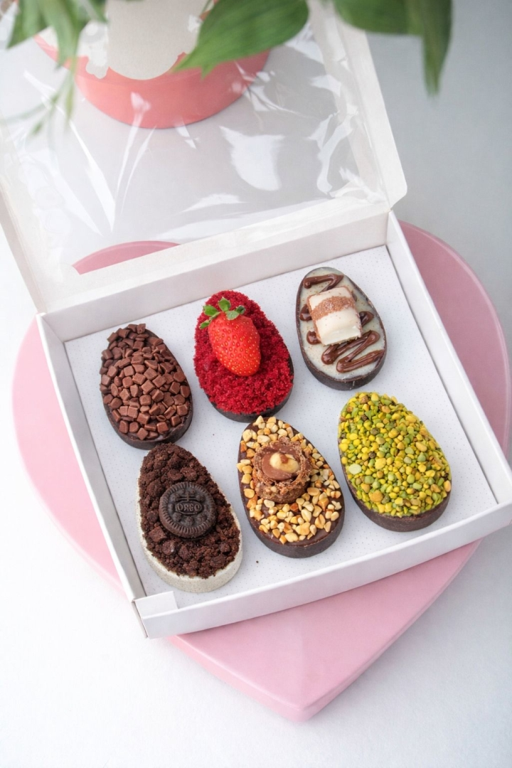 Caixa com 06 unid de 50g cada, nos sabores de Pistache, Red velvet, Oreo, Kinder Bueno, Ferrero Rocher e Brigadeiro. Peso 300g